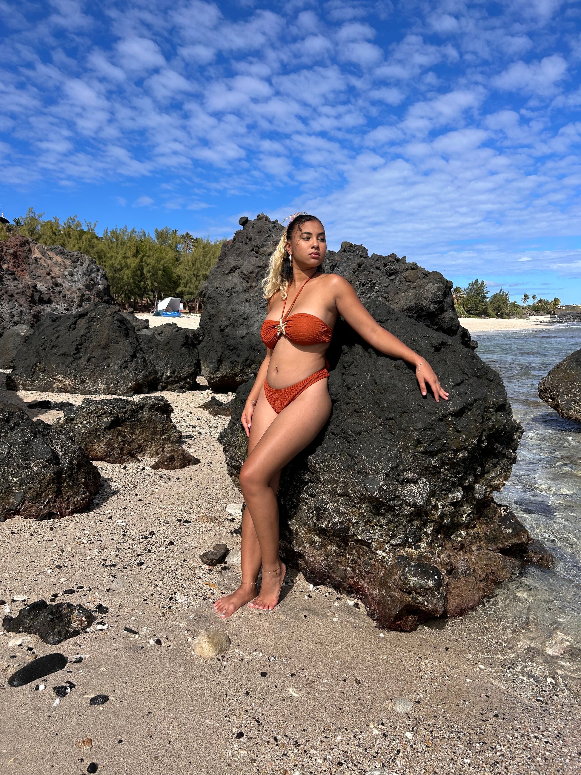 Maillot marron clair, orné d’une étoile de mer centrale.
